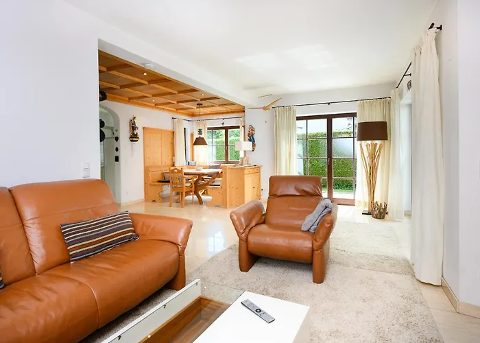 Haus Bergspitze Lägenhet Garmisch-Partenkirchen med 2 sovrum ligger mindre än 1 km från Ludwigstraße och har utsikt över trädgården. En av höjdpunkterna i den 150 m² stora lägenheten är en terrass med utsikt över bergen.